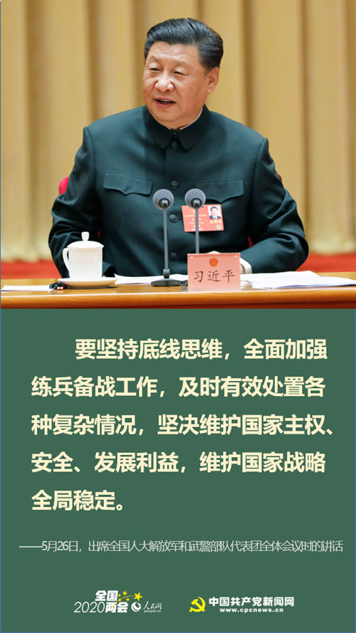 习近平强调,要坚持底线思维,全面加强练兵备战工作,及时有效处置各种复杂情况,坚决维护国家主权、安全、发展利益,维护国家战略全局稳定。