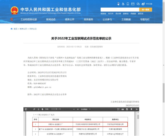 近期,工信部发布了2022年工业互联网试点示范名单,位于宁波前湾新区的极氪智慧工厂的5G全连接工厂项目成功入围。