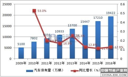 中国汽车保有量及增速