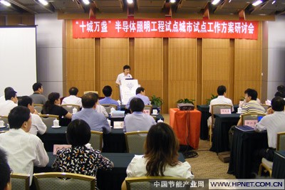 今年3月16日上午,科技部高新司在北京召开“实施‘十城万盏’LED照明应用示范城市方案座谈会”,这次会议是科技部高新司开展这项工作的启动研讨会。会议内容是听取对开展“十城万盏”试点示范工作的建议和讨论试点示范城市工作方案。会议决定加大推进“十城万盏”试点示范工作力度和试点范围,在2009年内批复20个以上试点城市,待试点一段时间后再根据有关标准和条件确定示范城市。会议第一次印发了“半导体照明应用示范工程实施方案编写提纲 ”,但会议对推广应用“1万盏LED功能照明灯”的标准,灯具、LED器件国产化率等问题还未明确。