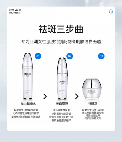 兑白根据中国女性的肌肤特性,经过多年研究,采用国际领先纳米技术和一流加工设备精致而成,加乘有效成份渗透和吸收,加倍美颜效果,首次激发肌肤自身的美白“新陈代谢力”,开辟以新陈代谢正是对抗黑色素的祛斑模式。从源头阻止黑色素的生成,改善肌肤细胞的新陈代谢,畅通毛囊,促进肌肤细胞自我更新,恢复胶原细胞弹性,提升肌白力,增强皮肤含氧量、含血量、含水量、淡化色斑提高皮肤综合活力,由内而外改善色斑、肤色不匀、黯沉,肤色白皙,细腻柔软,尽显健康光泽,完全符合净化肌肤的自然规律,成为奠定了祛斑产品行业领导者。