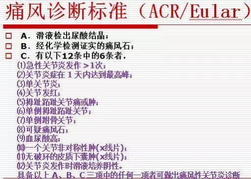痛风的中医诊断标准,主要采用国家中医药管理局发布的《中医病证诊断疗效标准》中的“痛风的诊断依据、证候分类、疗效评定”的标准。诊断依据如下。