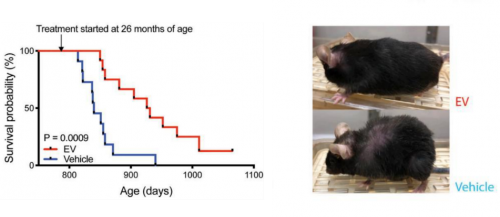 试验中,注射了NMN的老年小鼠平均剩余寿命从2个月(相当于人类6年寿命)延长到了4.6个月(相当于人类14年寿命),足足提升了2倍多,其中一只补充了NMN的小鼠寿命甚至超过了1029天(相当于人类103岁以上),到论文发布时依然健在。
