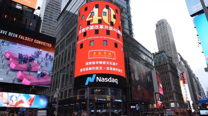 皇家贡技在中国改革开放 40 周年之际登陆美国纳斯达克大屏