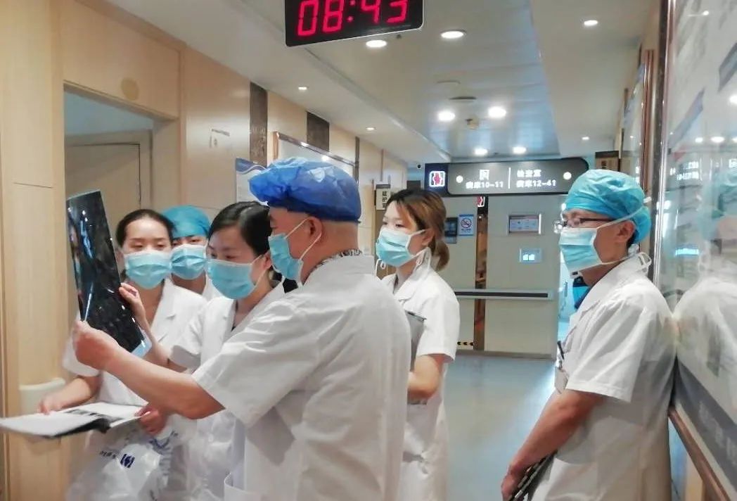 张主任、杨副主任带领团队研究蒋大爷手术细节