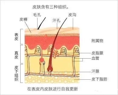 皮肤是个“器官”,皮肤是一个“活的器官”。为什么强调是“活”的呢?只有活着的东西,才会受伤;只有活着的东西,才会自我修复。