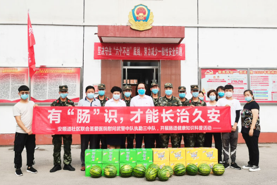 武警中队领导对我们慰问团的到来表示感谢:感谢大家为官兵们做的实事,谋的福利。天津开发圣爱医院不仅为我们带来了实用的胃肠科普知识,还带来了防暑降温的生活用品,让我们倍感温暖亲切。