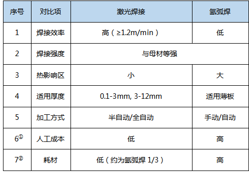 氩弧焊与激光焊接对比表格如上。