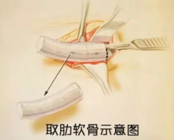 肋软骨不仅具备一定的硬度,而且柔韧,可以雕刻成任何形状、长度、厚度,适用于鼻部各个部位。