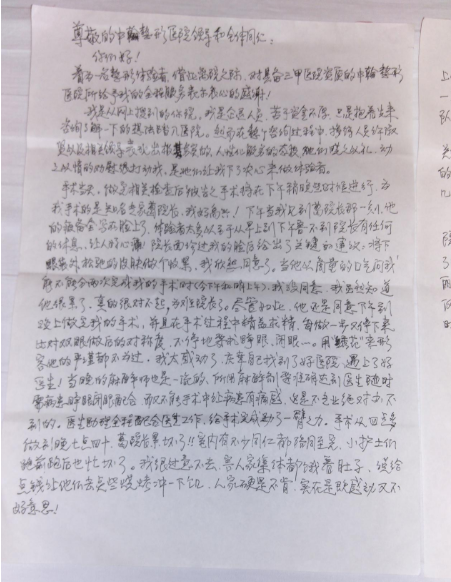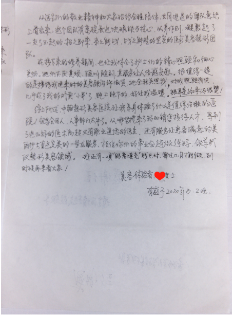 暖心!武汉中翰整形医院收到一封手写感谢信