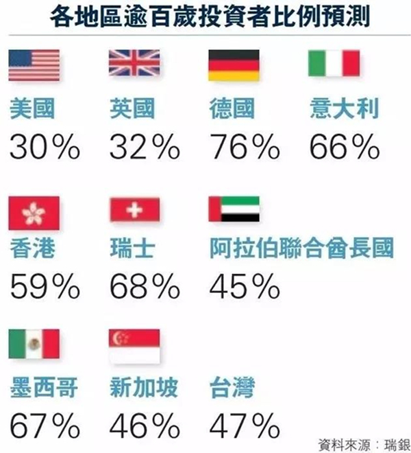 大部分富人的寿命要比穷人更长,在瑞银集团一项新的金融服务调查中,53%的富有投资者表示,他们预计能够活到100岁。