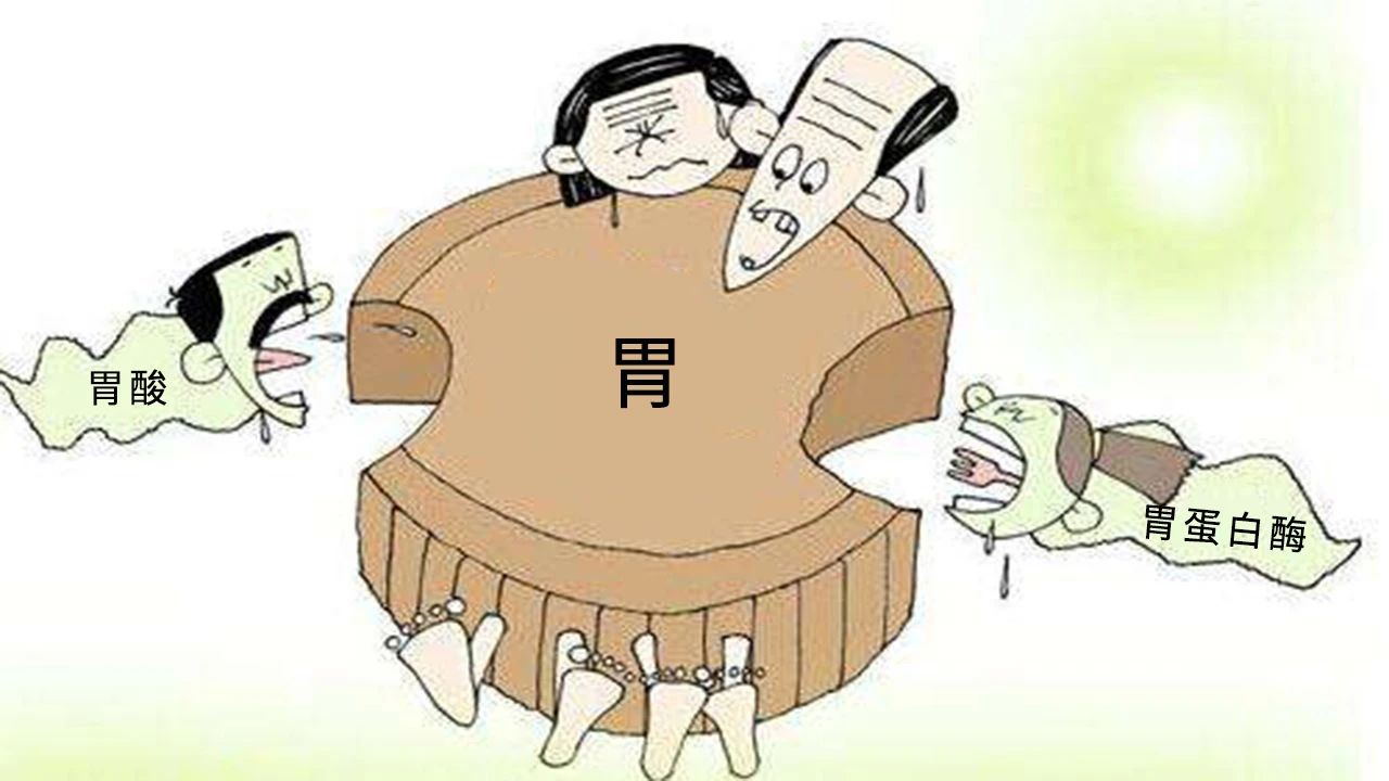这里的爸妈说的正是胃,它辛辛苦苦把胃酸、胃蛋白酶分泌出来,胃酸、胃蛋白酶本来应该消化食物,可它却“不孝”,竟把自己的父母——胃给消化了, 这就是胃溃疡,是我们身体中的“家门不幸”!