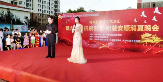 炎炎夏日,为丰富社区居民的业余文化生活,增进邻里间和谐,2020年8月7日, 由杭州道街工委、杭州道街道办事处主办,安顺道社区居委会承办的“唱响杭州道--勠力同心·抗疫创文·和谐安顺”为主题的消夏文艺晚会在安顺道碧海长住小区拉开序幕。