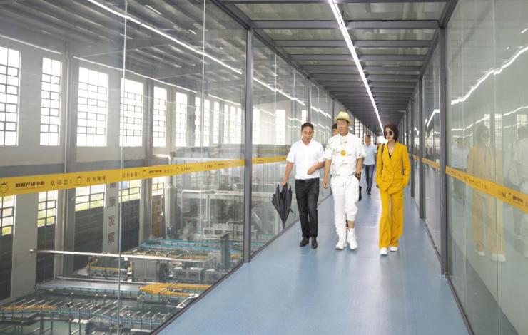 宏财刺力营销有限责任公司总经理徐天鹏带领艺人参观刺梨生产线