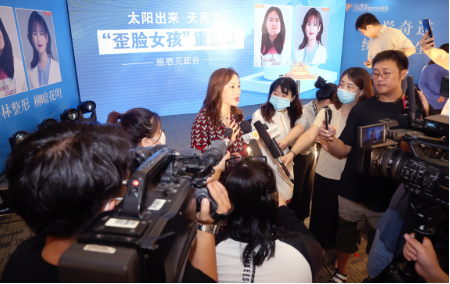 8月4日上午,23岁的歪脸女孩小秋顺利度过手术恢复期,在郭明义爱心团队的陪同下出院。持续关注小秋情况的众多媒体纷纷赶来,共同为小秋筹备了一场简单温馨的庆祝仪式。“我会牢牢记住这一天,杏林给了我新生,这就是我的重生日!”小秋告诉记者
