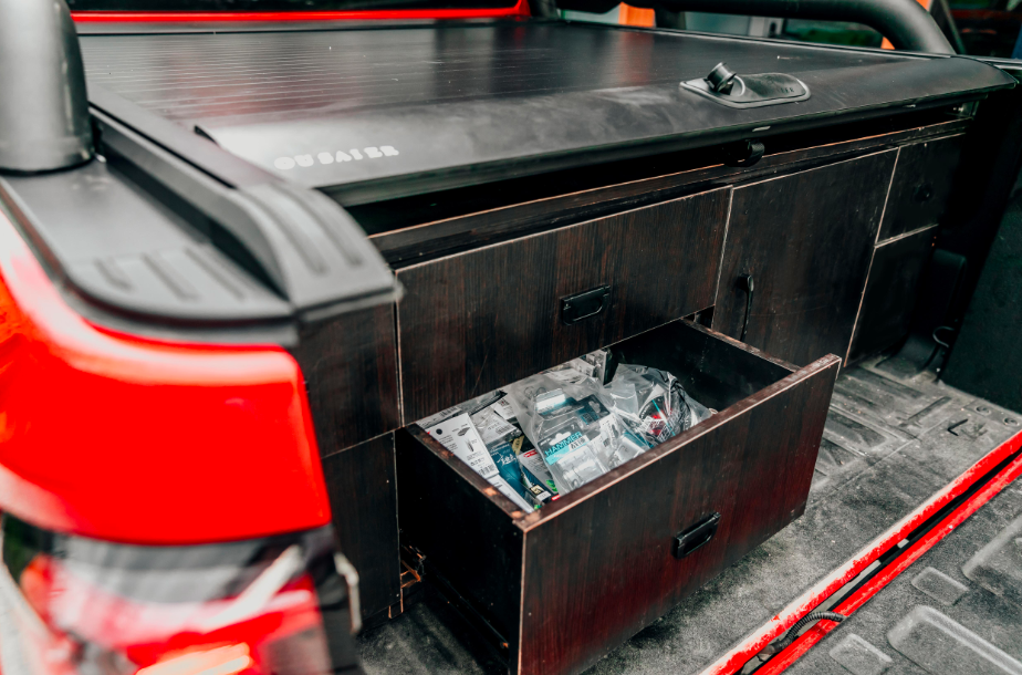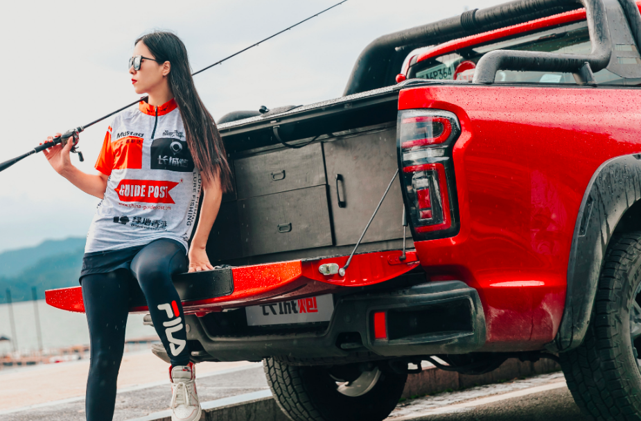 论助力钓鱼,参与路亚锦标赛的长城炮超大的后货箱和经过改装的组件,能够存放各种钓鱼设备以及钓到的鱼获。为避免鱼线缠绕、鱼获倾洒,长城炮越野皮卡货箱改装为滑轮抽屉式隔断储物仓,钓鱼用具能够存放的井井有条、鱼获与用具干湿分离,隔离鱼腥味,这些都是SUV车型所不具备的独特优势。