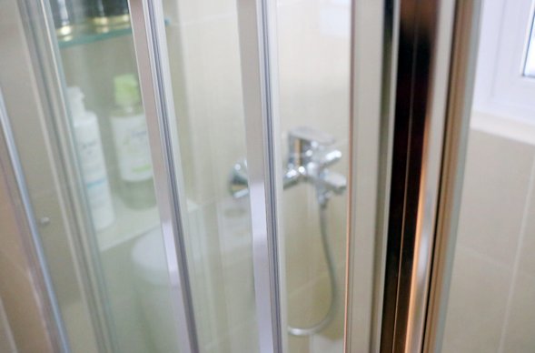 在洗浴室内安装三折门,打造干湿分离空间的同时保证室内空间合理利用,三折门设计灵活方便,方便大件物品搬入。