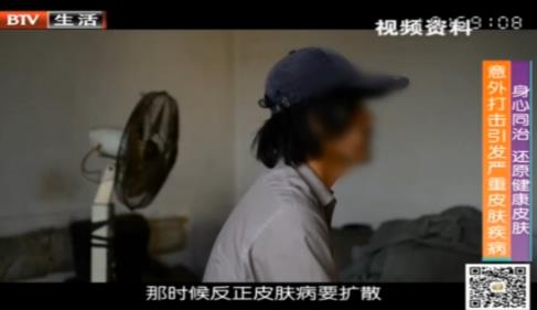 节目中,两位主任还分享了临床上多个病例。其中一名叫张军善的安徽患者,白癜风起初在腿上有一小块,后因为大女儿走失,精神遭遇重大打击,白斑也随之大面积扩散,甚至踏上“拾荒”路。
