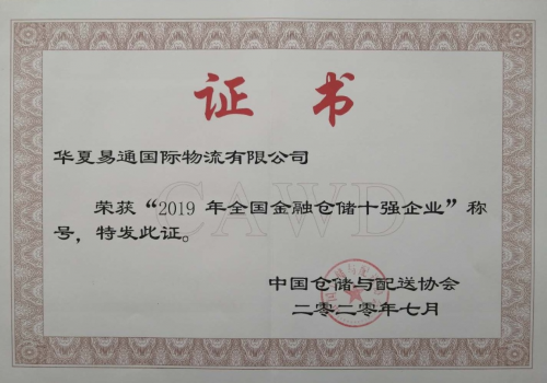 日前,由中国仓储与配送协会评选的“2019年全国金融仓储十强企业”活动圆满结束。华夏易通国际物流有限公司再度上榜,这是我公司继2017年、2018年连续两年获得十强企业后,第三年获此殊荣,证明了华夏易通在全国领先的动产质押业务规模及监管能力。