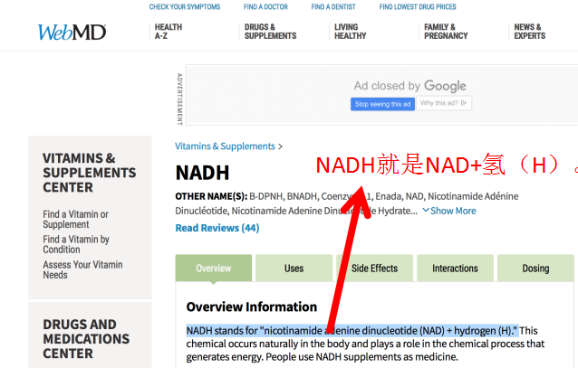NADH是还原型烟酰胺腺嘌呤二核苷酸,天然存在于人体每个细胞中,参与上千项反应。为了强调其对生命活动的重要性,科学家将其命名为“人体1号辅酶”。又因NADH在“细胞发动机”线粒体的健康中发挥重要作用,又被称为“线粒体素”。国际权威的医学健康信息平台美国WebMD网站介绍NADH就是烟酰胺腺嘌呤二核苷酸(NAD+)+氢(H)。