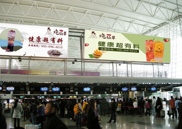 零动烧仙草的机场画面制作用心,从用色、选材到图案、文字的设计和布置位置的选取,无一不精美独到和认真考究。这一幅幅图样装饰和美化着机场环境,更丰富和活跃了旅客们的出行心境,同时也为零动烧仙草收获更高的名气与人气,可谓是一举多得的创举.