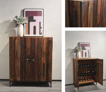 DNA老榆木柜,精选30-50年的老榆木材,经高低错落、款识不同拼合而成,DNA拉手为铁灰色仿古铜扣手组合,这样的搭配赋予了老榆木柜历经时光却经久不变的质感,它仿佛是一位长者,安静的立于家的角落,散发着智慧的光辉。考究的工艺足以让老物件焕发新生,老榆木的“老”极其讲究不论生长年限,只论留存时间,即使是生长了百年以上,只要是最近几年砍伐的,也只能被称为新榆木料,只有诸如回收的老榆木房梁和老门板料才是柏厨所用的弥足珍贵的老榆木材。