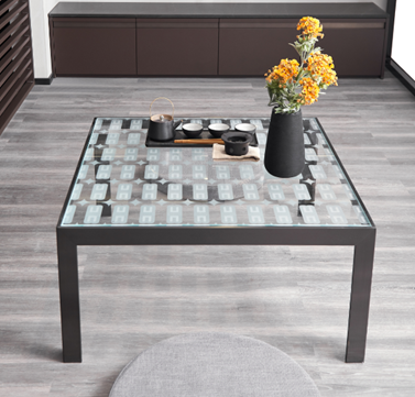 DNA玻璃茶几于西方形制的外表之下,巧思东方内涵,玻璃台面萃取柏厨品牌元素,构成独特的品牌图腾,材质则运用轻度、中度玉砂玻璃及超白透明玻璃相结合,图案排比整齐,美感十足,且采用了无指纹处理,通透明澈,阳光洒进客厅,这张茶几就是家中最温暖的反射。茶几底部用了加厚的不锈钢底座,抗氧化,美观又稳重。