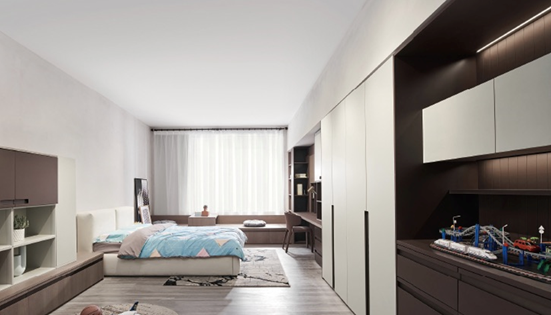 学习和玩耍占据了孩子成长过程中大部分的时间,所以属于他们的私密空间一定要满足这两点需求。柏厨集成家居塔奇充分考虑到孩子们的使用需求,将学习空间和休闲空间综合设置,学习桌、书架和衣柜收纳柜一体式设计,增加储物空间,提升空间利用率。除此之外,还贴心配置了专用的玩具收纳柜,从小培养孩子自己动手收拾房间的习惯,也让家里不再凌乱;衣柜的收纳分区也采用了更符合儿童使用需求的设计,同时方便家长培养孩子自己动手的能力;飘窗是很好的休闲区,孩子可以在这里看书晒太阳,也可以和家长一起在这下棋,简单而温馨的亲子时光就是最真实的幸福!