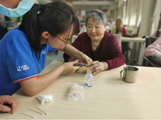 领创激光团队为老人剪指甲