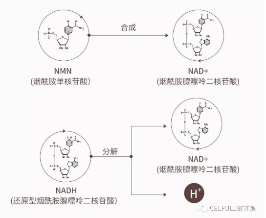 NADH是NAD+的还原态。其抗衰功效,通过进入人体后分解成NAD+和生物氢“H+”,同时释放出能量来体现。
