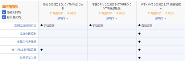 再来看看CR-V,前面我们说到许多车型会配备普通的 PM2.5空调滤芯,但CR-V显然不在此之列。无论是过滤装置,还是空气净化器,其均未搭载,让人不得不感叹其对初心——日系“减配”风的坚守。