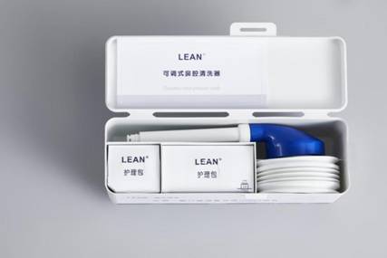 lean乐恩洗鼻器配备喷射结构(瓶体、瓶盖、出液管)、硅胶喷头、海盐护理包。护理包每小包2.25g,压缩瓶体的标准容积是250ml,250ml纯净水/凉白开和2.25g盐配比成0.9%浓度缓冲生理盐水液体。lean乐恩洗鼻器能通过足量的生理盐水在鼻腔内自下而上,自左而右或自右而左在鼻腔通道中流过,再流出鼻腔通道,整个过程可以把鼻腔通道中的粉尘、细菌清洗干净,使鼻腔恢复健康状态。