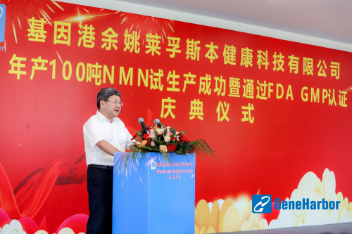 8月18日上午10点,莱孚斯本百吨级NMN工厂投产仪式在余姚中意生态园正式举行。余姚市委常委韩柏顺、莱孚斯本母公司基因港总裁王骏出席仪式并发言 。