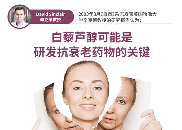 白藜芦醇作为天然抗糖因子,具有减少肌肤糖化反应,起到抗衰老作用。2003年8月《自然》杂志发表美国哈佛大学辛克莱尔教授的研究报告认为:白藜芦醇可能是研发抗衰老药物的关键。人体没被代谢的糖和蛋白质抱团形成褐色物质(AGEs),影响胶原蛋白正常发挥作用,逐渐产生皱纹、松弛老化。而白藜芦醇是SIRT1去乙酰化酶的激活剂,SIRT1能抑制糖类和脂肪酸代谢、延缓衰老,可抵御活性氧介质对DNA的损伤,使机体保持健康年轻状态。