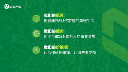 美康严选以用户为中心,以全新的社交零售模式和5G云仓系统为核心驱动,重构传统零售业的信息流、产品流、资金流,从而搭建效率更高、成本更低、风险更小的新零售渠道,形成独特的全产业链核心竞争力!美康严选聚焦小微创业市场,持续进行商业模式创新,以打造中国第一家市值千亿的新零售爆品平台上市公司为核心目标,以成就客户的财富梦想,成就用户的美好生活为伟大使命!