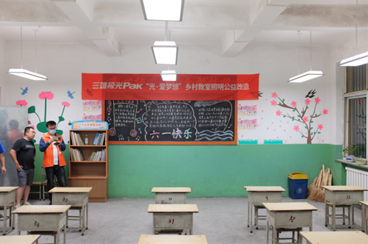 基于此,三雄极光利用自身近30年专业照明设计技术,从河南乡镇小学再到山西吕梁市文水县东城学校,一站接一站为偏远地区学校教室免费进行照明升级改造。