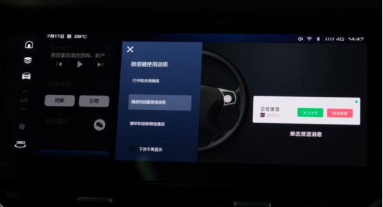开车也能聊微信,就是2021款哈弗F7带来的全新社交体验。凭借Fun-Life 2.0系统的率先搭载,2021款哈弗F7无比贴心地将微信车载版引入车机。驾车途中微信响了,也不用再拿起手机操作,配合强大的语音交互能力,车载微信版的使用更加方便了。在2021款哈弗F7上,不仅实现了全语音交互收发消息,接打语音电话,更支持车队位置共享、车队对讲、位置分享等等实用功能,语音操作更是轻松便捷,重要消息不再错过。