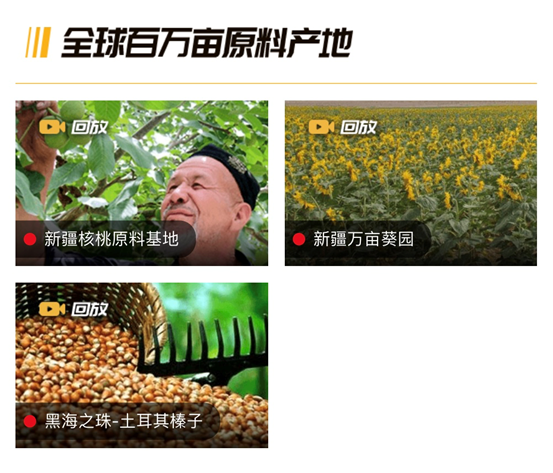 众所周知,食物越新鲜,味道就越好,营养价值也就越高,这个规律对于坚果来说尤其适用,新鲜是其最重要的品质指标。近日,洽洽食品就以一场透明工厂全球云直播,切实地向消费者和食品行业证实了洽洽小黄袋每日坚果的“新鲜”实力,在五大板块直播中,全球百万亩原料产地的直播吸引了众多网友的关注,透过“亲临”全球百万亩原料产地中国新疆核桃、葵园和土耳其榛子等优质原产地,消费者可以体验到一颗坚果是如何从原料产地经过精挑细选进入加工生产之中的。