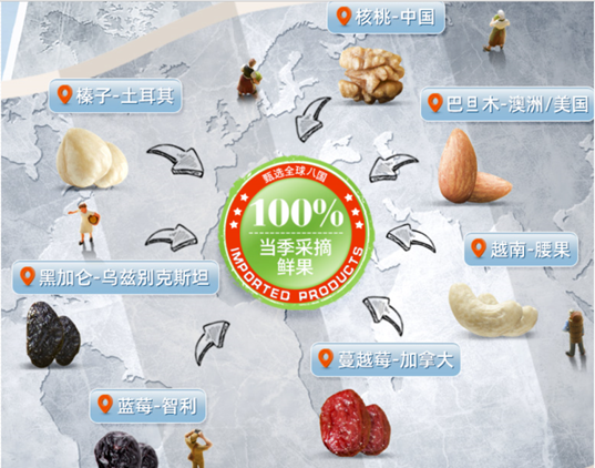 为从源头上保证坚果新鲜品质,洽洽从2013年就开始布局坚果的上游原料生产基地,在全世界建立100多万亩坚果原料种植基地。洽洽小黄袋每日坚果将产品7种原料的筛选范围扩展至全球优质坚果产区,所有的原材料都经过了洽洽亲自的把控,严格筛选当地当季成熟坚果力求最优质最符合国际口味与营养标准的坚果,并通过冷链运输和洽洽自主研发的关键保鲜技术,让坚果的味道可以得到更好的表达。通过原材料的彻底把控,洽洽让“小黄袋每日坚果”不只是坚果品类的一个名称,而是一个真正让消费者每天都吃到最新鲜每日坚果的承诺。