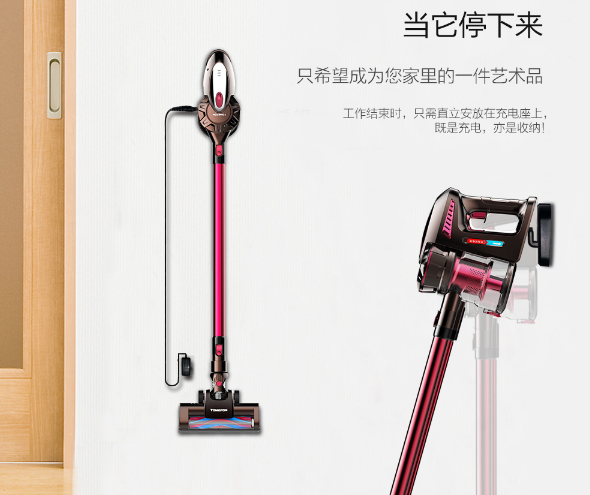 斐纳TOMEFON无线吸尘器全新升级电池配置,采用了2200毫安的大容量电池,续航时间长达30分钟之久。对于斐纳TOMEFON无线吸尘器来说,收纳既是充电,当它需要充电时,你只需将它放在有充电座的角落进行充电,不必像传统吸尘器一样破坏墙体,维护家庭装修的和谐美观。