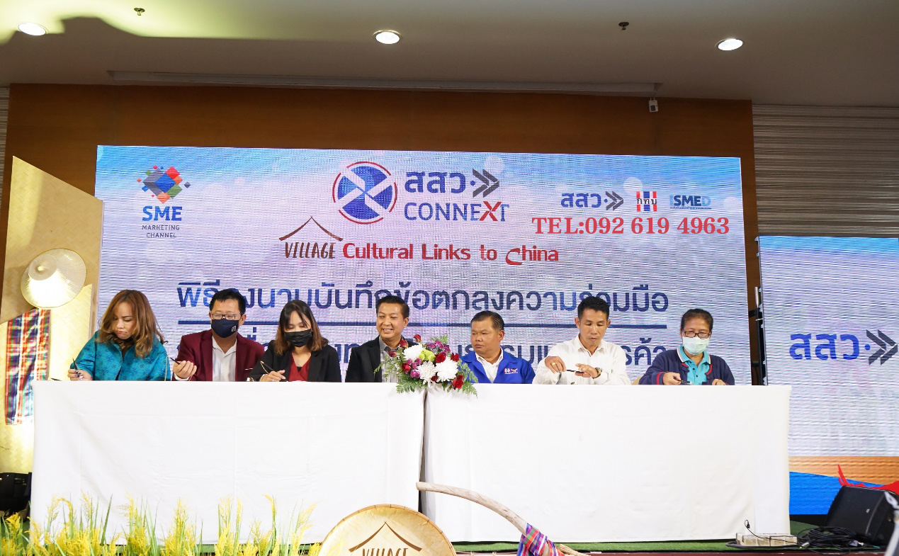 泰国中小型企业促进局局长威拉彭•马来教授以及泰国国家乡村和城市社区办公厅厅长拉鹏•沈查能先生,共同为中部地区的乡镇成员做了培训,让他们了解了出口农业产品到中国的相关知识,其中也包括了关于销售产品到中国的相关标准及法律法规方面的知识培训,并共同见证了泰国贸易代表和乡镇社区间的文化结合贸易的合作备忘录的签署,从而综合促进乡镇社区和贸易代表在建立分支网点、合作及机构间交流上的加强合作,进一步推动企业将知识体系、学术信息、研究成果以及科学发展和技术运用到商业当中,为企业在打造创业就业岗位以及为泰国商品增值上创造机遇。中部地区有五家企业代表,分别为:阿纳斯国际贸易与旅游有限公司(ANAS INTERTRADE&TOUR CO.,LTD.)、National Vision for Sustainable NVS 有限公司,S.T. Arabian集团股份有限公司,查能谭雅大米有限公司(JAROEN THANYA RICE有限公司)和暹罗尼米有限公司(Siam Nimit有限公司)。超过五家旗下集体国有企业代表共同签署了本次合作备忘录。