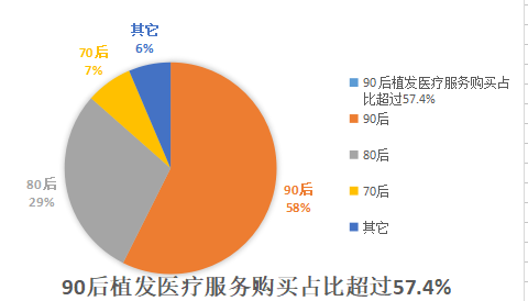 脱发被认为是衰老和油腻的标志,2017年阿里健康发布的《拯救脱发趣味白皮书》显示,根据统计,购买植发、护发产品的销售费,90后占比36.1%,即将赶超占比38.5%的80后。