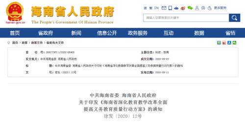 据《三亚日报》报道,海南9月11日印发《海南省深化教育教学改革全面提高义务教育质量行动方案》,表示将实施学校体育固本行动,开足开好体育课程,全面普及中小学生游泳教育并纳入中考体育内容,积极推动海南特色水上运动项目和民族传统体育运动项目进校园,让每位学生掌握1至2项运动技能。