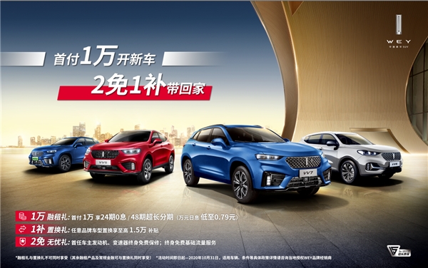 与此同时,WEY以用户为中心的理念仍在进行中……金九银十换车季,为减轻用户的购车压力,自即日起,WEY品牌还推出了超值礼遇,车主选择WEY品牌旗下VV5、VV6、VV7系列车型,可享受1万元首付、24期0息的“1万融租礼”、至高1.5万元任意品牌车型置换补贴的“1补置换礼”,以及首任车主发动机、变速器终身免费保修、终身免费基础流量服务的“2免无忧礼”,大大降低了车主购车门槛和购车压力。