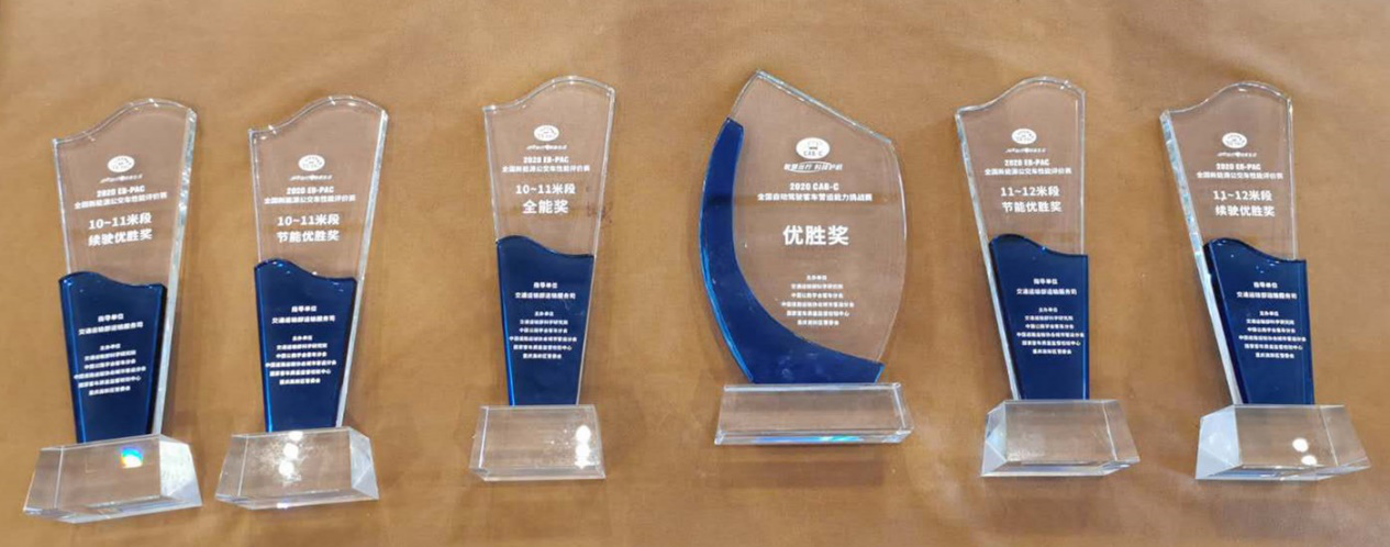 最终,苏州金龙海格客车携第六代智能网联新能源公交蔚蓝Azure系列客车、L4级无人驾驶巴士深蓝共计斩获六项大奖。其中10米蔚蓝客车获10-11米段“续驶优胜奖”、”节能优胜奖”以及”全能奖”;12米蔚蓝获11-12米段“续驶优胜奖”、“节能优胜奖”。备受关注的无人驾驶巴士深蓝荣获“2020CAB-C全国自动驾驶客车营运能力挑战赛优胜奖”。