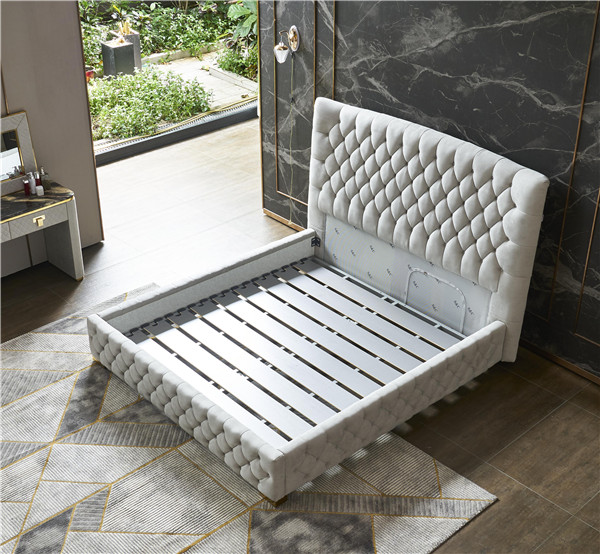 尚驰轻奢能量系列马切拉塔软床软包采用优质高弹海绵填充,质地饱满,厚实不塌陷,由内而外释放疲倦,让舒适无处不在,经。床屏应用经典的拉点设计,极具艺术感和设计感,以手工精准处理,让优雅与舒适在点与点之间的等距中延伸,褶皱舒缓,让身体的每一个部位都能找到最适合的舒适。并对身体接触具有一定的按摩功能,坐靠自在,舒适正好。床侧包裹采用柔软的布艺与海绵为床侧四周包裹,避免生活中的意外磕碰,赋予产品以外更多人性化关爱。根据人体工学研发的靠背弧度,微倾的弧度,却独享头等舱奢适靠感,贴合脊背生理曲线和倚靠习惯,靠感更自然,躺靠都是舒适享受。四方柱形床脚,让睡眠舒适安心,稳如泰山。