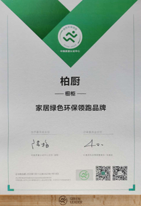 细观近些年的家居消费市场,消费者在选择家居品牌时更加侧重对产品环保性能的对比考量,对于健康家居的追求将会是持续的趋势,也会是品牌之间持续的竞赛。柏厨品牌自成立之时就将产品品质视为企业发展根本,不仅重视产品的实用性能,更加注重产品的环保品质。健康是幸福之本,唯有严格的守护才能铸就健康的生活,一直以来柏厨都是用事实说话,用一个个严格标准的数字向万千消费者宣告品牌的可信赖。2020年9月,更是一举斩获中国质量认证中心鼎力支持的“红星美凯龙推荐绿色领跑品牌”大奖,健康绿色环保得到印证。