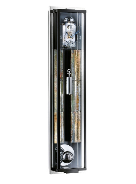 这款钟的机芯由顶部拱形穿透玻璃及带传感器控制的LED灯照明,这样全透明的设计在机械钟领域还是首创。此外,我们还特别使落地钟的桃花心木钟身平稳浮在子弹头形木座上,以此来勾勒一种新时代的科技感。同时,附带的可移动陀飞轮壁炉钟也顺应了如今的全球合作潮流,为使用者提供便捷的第二时区信息。金属条镶嵌,钢琴烤漆表面处理,一月超长走时,高精度机芯,碳纤温度补偿钟摆,使“Riva”成为一台艺术与尖端科技的完美结晶。