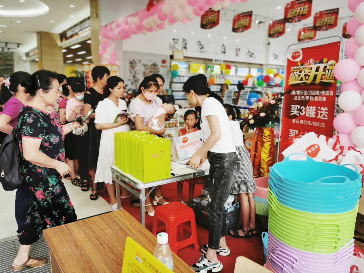 开业当天,随着活动高潮迭起,络绎不绝的人潮让活动现场气氛高涨,不少宝爸宝妈踩着点来捧场。