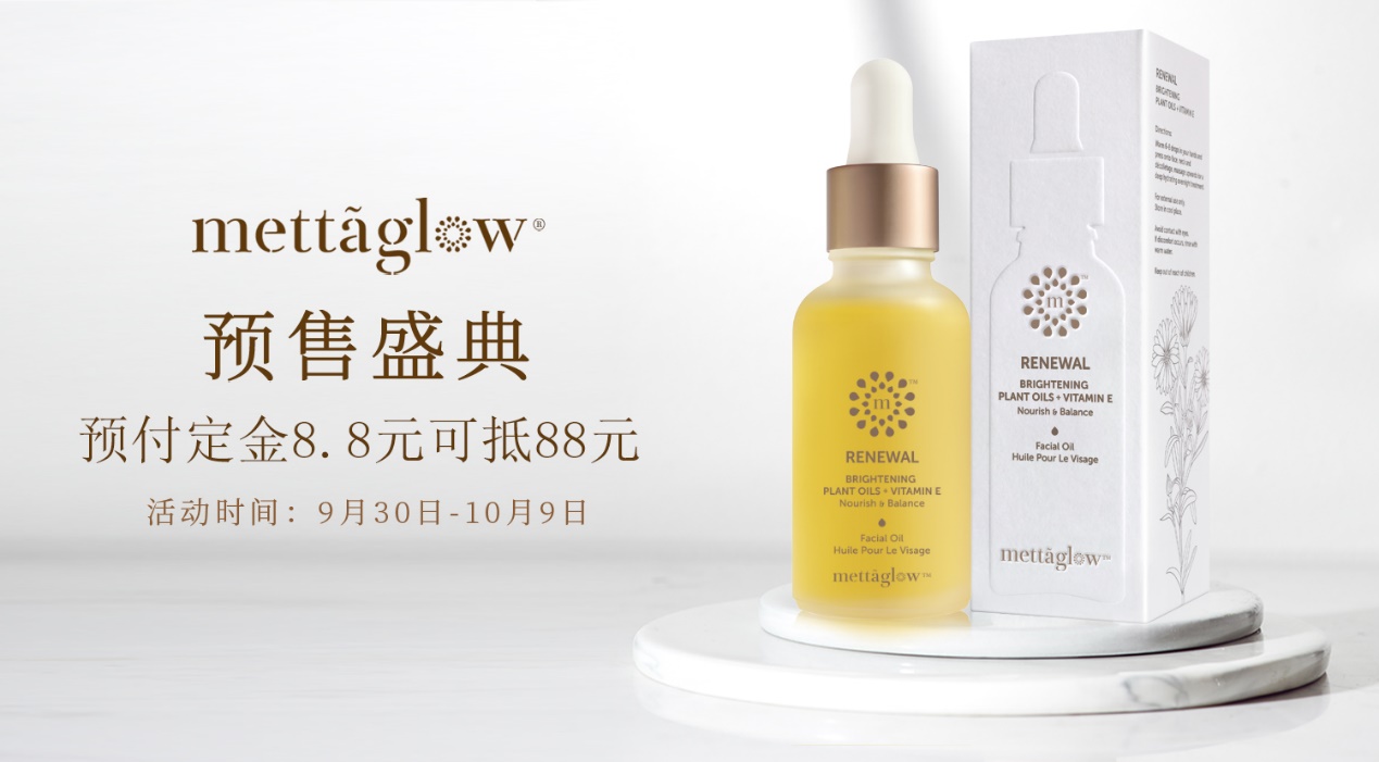 2020年9月30日,专注于研发高纯精油与天然提取物护肤的新加坡护肤品牌美塔格在中国首发,同时在京东官方旗舰店开启预售活动,预售时间持续到10月9日,此间将推出仅此一次的产品优惠价格。